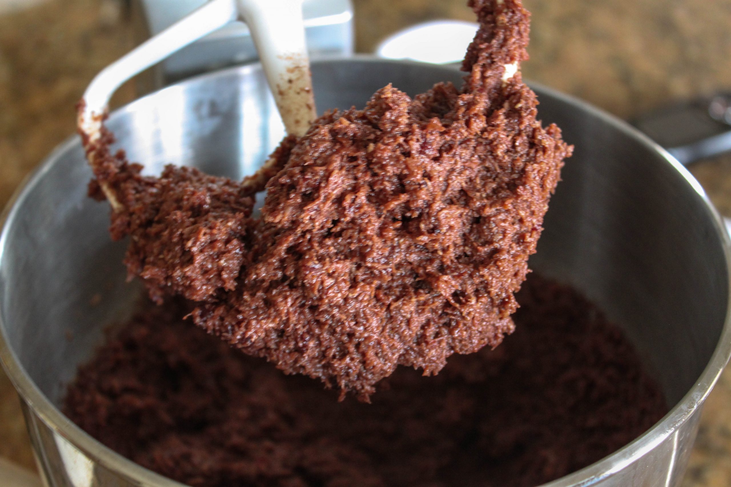 -1/4 C fresh beet juice (this gives the roon a lovely red color, but is optional. Without it, you’ll just have a milk chocolate-flavored macaroon)
